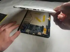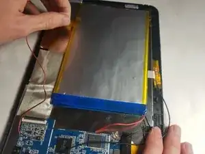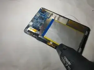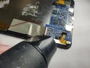 Используйте фен, чтобы расплавить клей, удерживающий аккумулятор на устройстве.
