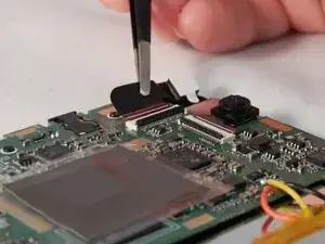 С помощью пинцета или пальцев удалите скотч, закрывающий разъем камеры.