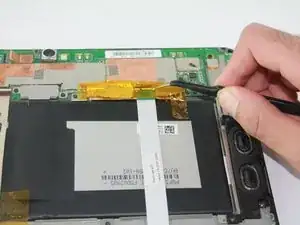 Пинцетом отогните разъём батареи, который расположен непосредственно под прижимной пластиной.