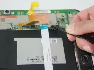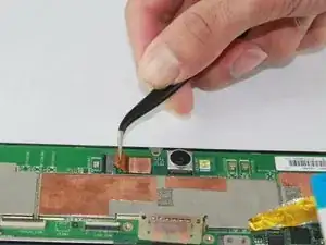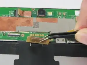 Отсоедините шлейф, подключённый к камере, потянув его наружу пинцетом.