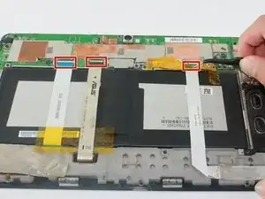 Отсоедините три шлейфа, потянув их наружу пинцетом.