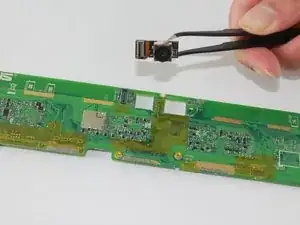 Осторожно потяните шлейф наружу пинцетом, чтобы отсоединить его.