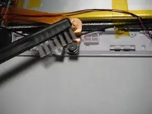 На задней части планшета имеется чёрная пластиковая крышка. Она прикреплена к ленточному кабелю.
