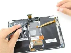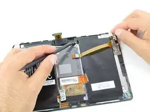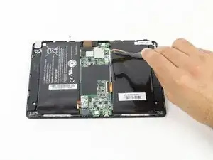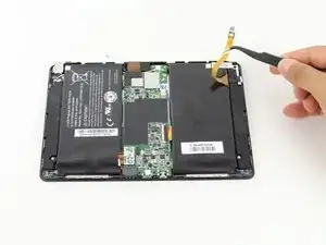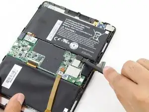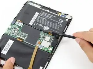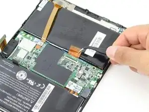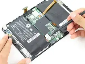 С помощью лопатки подденьте разъём аккумулятора и отсоедините его от платы.