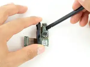 С помощью лопатки отсоедините плоский верхний разъём, идущий от блока камеры.