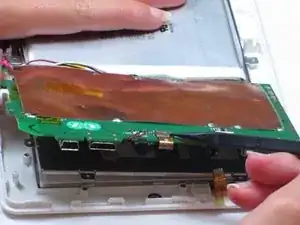 Отсоедините ленточный кабель у кромки материнской платы в нижнем правом углу устройства.