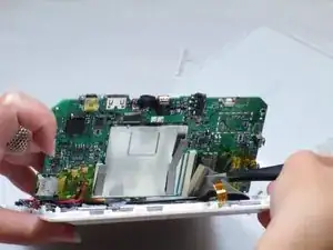 Открутите четыре винта Phillips #00 длиной 3 мм, расположенные в каждом углу материнской платы.