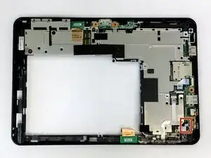 Отключите белый кабель камеры, расположенный с правой стороны средней рамки под картой WLAN.