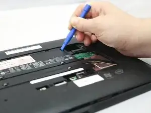 Используйте синюю пластиковую лопатку, чтобы надавить на вкладку, расположенную на задней стороне устройства.