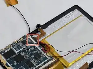 Для удаления ленты переверните черный переключатель, где она соединена с материнской платой, и аккуратно вытяните ленту, заменив её на новую камеру Dragon Touch Y88X Plus.