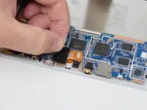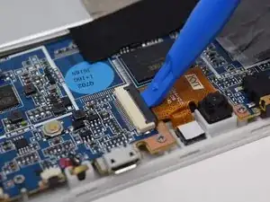 Используйте пластиковой лопаткой для вскрытия, чтобы отогнуть вверх чёрную фиксирующую защёлку.