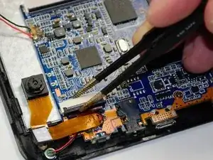 Используйте пинцет для прецизионной работы, чтобы сжимать зажим шлейфа и освободить его.