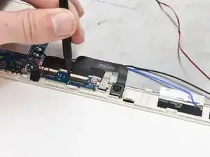 Вставьте самый маленький пластиковый инструмент для вскрытия в разъём карты SD. Аккуратно подденьте до отделения задней панели от панели экрана.
