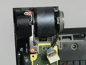 Между кнопкой питания и корпусом камеры находится серебристая крепёжная скоба камеры. Открутите два винта 3 мм на крепёжной скобе камеры с помощью отвёртки PH00.