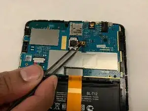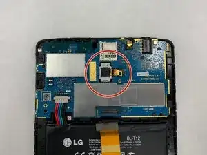Осторожно отсоедините шлейф камеры от материнской платы с помощью пластикового инструмента для поддевания.