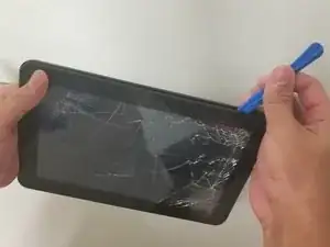 Вставьте пластиковый инструмент для открытия в щель между экраном и задней панелью планшета. Передвигайте инструмент вдоль щели, пока задняя панель не освободится.