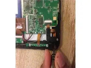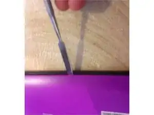 Задняя панель планшета закреплена простым защелкиванием. Используя металлический открывающий инструмент, осторожно подденьте между пластиковым задником и краем, но пока не снимайте его. Обходите по кругу, пока не отделите их.