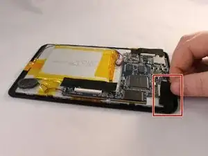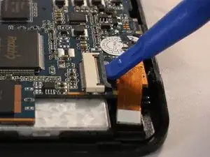 Используйте пластиковый инструмент для открывания, чтобы поднять язычок ZIF-разъёма и освободить шлейф камеры.