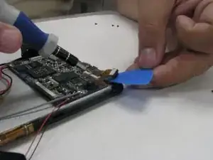 Используйте пластиковый инструмент iFixit для поддевания задней крышки планшета.