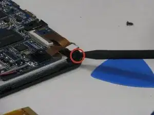 Используйте пластиковую поддевку и отвертку Phillips для удаления камеры от её пайки на материнской плате, и отложите её в сторону для замены.