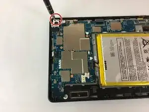 Существуют еще девять клипс вокруг области аккумулятора. Вставьте пластиковый инструмент в клипсы и поднимите, чтобы отключить их.