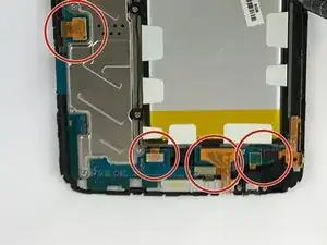 Поднимите четыре защёлки-коннектора, используя инструмент для вскрытия. Это отделит коннекторы от ленточных кабелей.