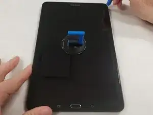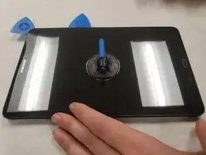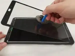 Возьмите присоску и аккуратно поднимите экран в направлении верхней части планшета.