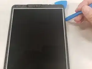 Возьмите лопатка iFixit и задвиньте острый конец в угол экрана. Подденьте его вверх, приподнимая угол экрана.