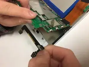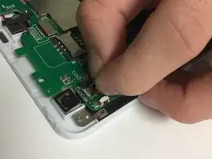 Отсоедините камеру от материнской платы сверху и выньте шлейф камеры.