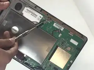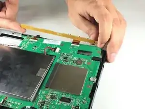 Используя один из пластиковых инструментов для открывания, отделите пластиковую заднюю часть от планшета в одной точке.