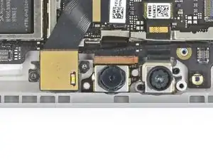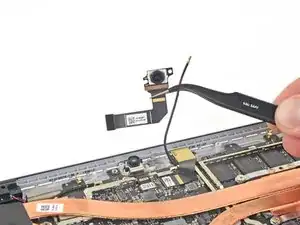 С помощью пинцета отключите антенный кабель, который перекрывает ленточные кабели камеры.