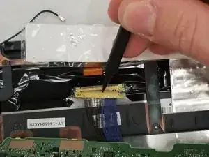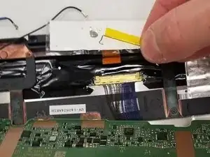 Отсоедините левый периферийный шлейф от материнской платы.