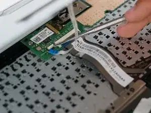 Поднимите маленькую белую защёлку, фиксирующую белый шлейф, с помощью нейлоновой лопатки и аккуратно вытащите шлейф.