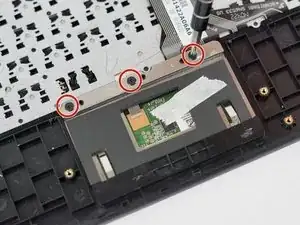 Отвинтите три винта 4 мм, крепящие тачпад, и снимите тачпад.