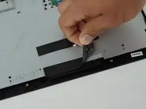 Поднимите большую чёрную защёлку, фиксирующую чёрный шлейф, с помощью нейлоновой лопатки и аккуратно вытащите шлейф.