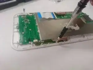 Используйте отвертку Phillips #00, чтобы снять три винта 4 мм с платы, содержащей разъем для наушников и разъем питания.