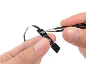 С помощью пинцета схватите угол одной из клеевых полосок, размещенных на креплении.