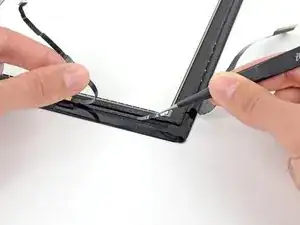 Используйте пинцет, чтобы снять прозрачную подложку с клеевой полоски прямо под кабелем кнопки «Домой».