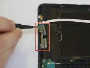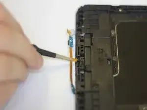Чтобы снять кнопку «Домой» для замены, найдите полосу ленточного кабеля на задней части планшета внизу.