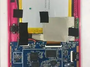 Используя пластиковый инструмент для открывания или металлическую лопатку, начните осторожно отгибать заднюю крышку от дисплея. Медленно покачивайте инструмент вверх и вниз, чтобы открыть планшет. Как только задняя крышка будет полностью снята, положите ее в сторону.