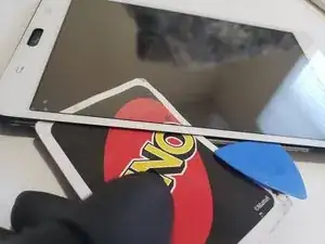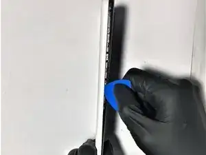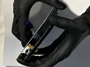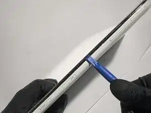 Для снятия дигитайзера вставьте и проведите пластиковым захватом, чтобы создать зазор между дигитайзером и экраном.