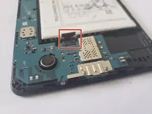 Отключите батарею, выдвинув золотой ленточный кабель.