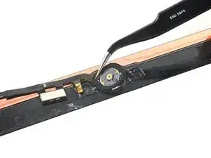С помощью пинцета отверните ленточный кабель кнопки «Домой» от задней крышки.