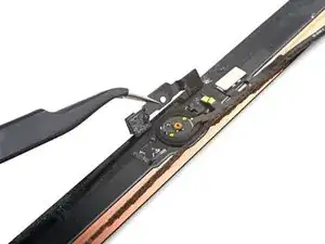 С помощью пинцета или пальцев снимите планку кабеля дисплея.