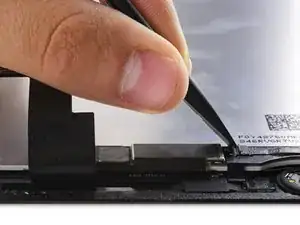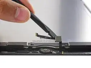 Не пытайтесь пока полностью снять дисплей — он всё ещё прикреплён к задней крышке тремя тонкими шлейфами.
