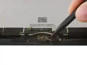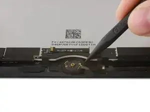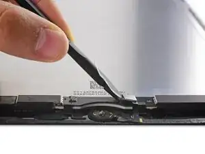 Снимите три винта Philips длиной 1,3 мм с кронштейна кабеля дисплея.