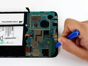 Пользуясь пластиковой открывалкой, поднимите разъём ZIF (с нулевым усилием подключения), фиксирующий гибкий кабель.