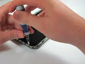 Рамка экрана крепится к Nook с помощью набора защёлок, расположенных по внешнему периметру рамки. Возможно также наличие полосы резинового клея под рамкой экрана. Если у вашего Nook она есть, придётся тщательно поддеть, чтобы отделить рамку от корпуса.