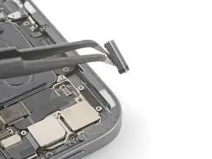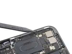 С помощью пинцета захватите пластиковый конец кнопки питания.