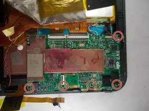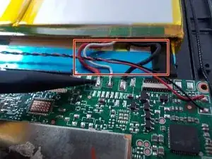 Извлеките старую материнскую плату из планшета. Возьмите новую материнскую плату и соедините чёрный провод платы с чёрным проводом аккумулятора. Проделайте то же самое с белым и красным проводами.